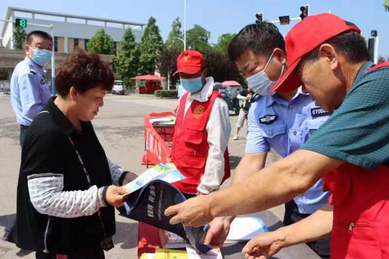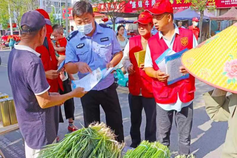 近日,安徽凤台县岳张集镇由人大联合组织县、镇人大代表、新时代文明实践所、民政所、派出所、司法所、安全办、平安办、卫健办等单位近40名志愿者,冒着烈日炎炎天气在全镇开展“推进移风易俗,弘扬时代新风”进街道、进村庄、进校园、进企业、进集市“五进”宣传活动。