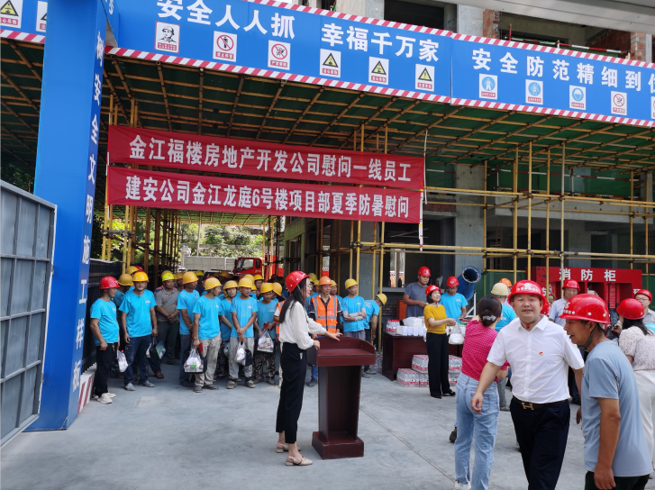 据了解,每年酷暑,金江福楼房地产开发公司都会针对建筑工人开展“送清凉”活动。本次慰问金江龙庭六号楼一线建筑工人,现场发放慰问物资5万多元,极大地鼓舞士气,凝心聚力,为建设更加优美舒适的幸福家园贡献力量。
