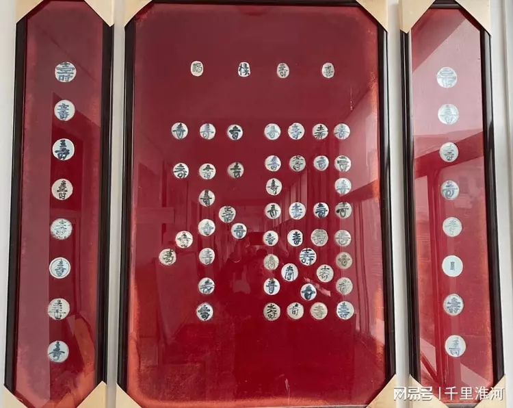 他把一些碗底瓷片精选,细磨,组合成了几幅更加精彩的新作品。