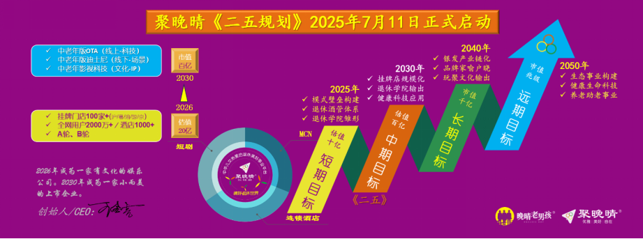 本网讯:2025年7月11日,上海——知名银发酒旅文娱品牌聚晚晴于11日在上海汽车城瑞立酒店隆重举办战略新品发布会暨品牌五周年《二五规划》启动仪式。