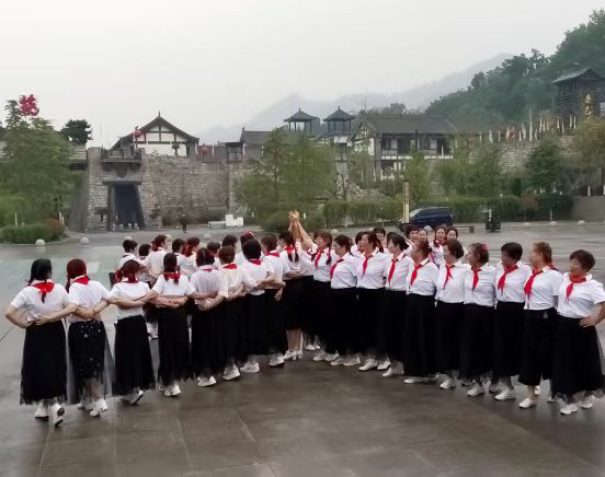 活动中,老人们戴上红领巾、行队礼,在秦巴风情广场唱起了熟悉的童年歌曲《五星红旗迎风飘扬》《在过二十年我们来相会》伴随歌曲跳广场舞,老人们神情羞涩又自豪,个个严肃认真,流露的是一种幸福,是对中国共产党领导下的美好生活发自内心的幸福感和自豪感。
