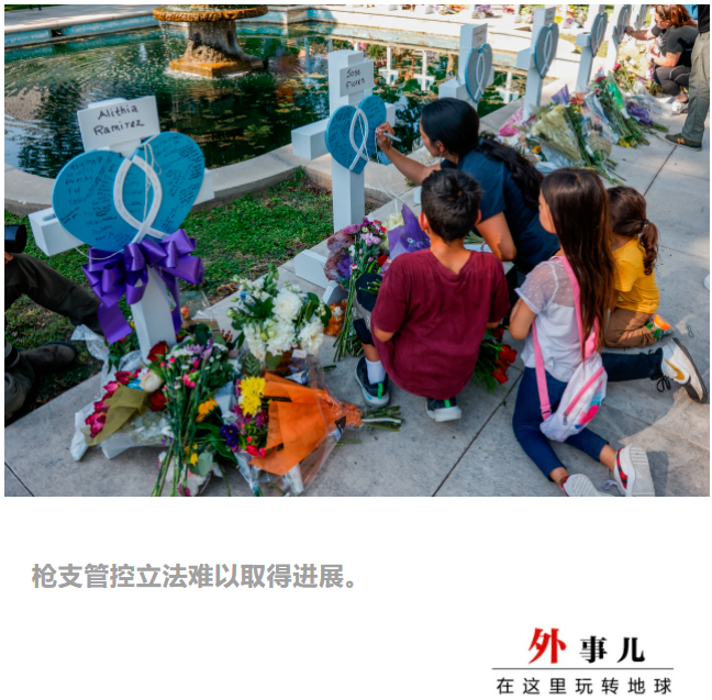 《时代》杂志写道:“今年以来,美国已经发生了213起大规模枪击事件,其中有27起学校枪击事件。世界上没有任何其他国家可以接近这一纪录。”